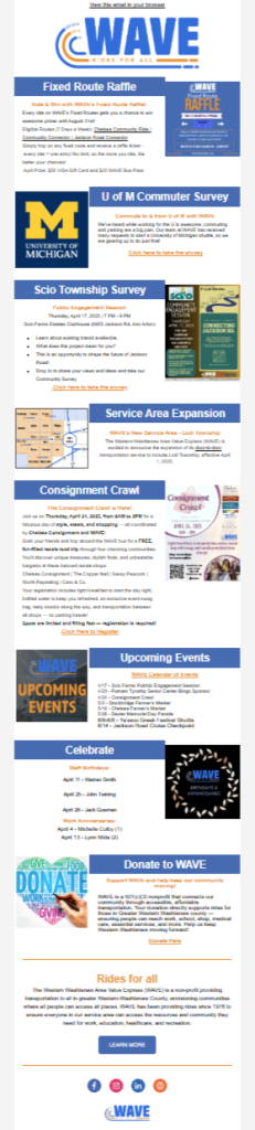 The WAVE Bus provides rides for all living and traveling in greater Western Washtenaw to the rest of the county